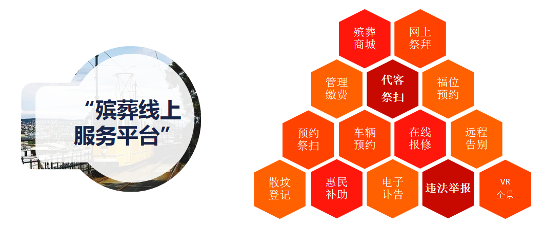 东方感城镇殡葬线上服务平台为丧属建立快捷、便利、高效的互联网+殡葬服务平台通道。持续推出网上纪念馆、线上商城、电子讣告、网上祭扫、预约祭扫、代客祭扫、福位预约、管理缴费、在线报修、墓位导航、远程告别、灵车预约、厅堂预约、火化机预约、VR全景等多项涵盖从逝者去世到骨灰落葬的整套服务,真正做到身后一件事的便民举措,减少群众投诉,杜绝乱收费现象,规范了殡葬市场。